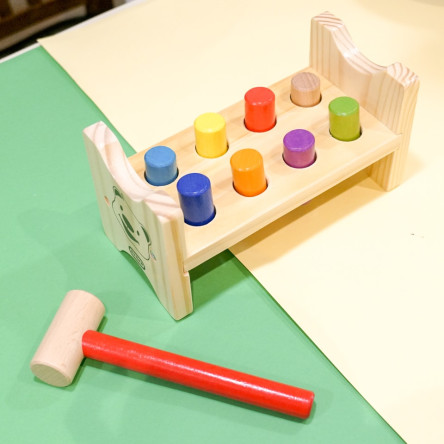 1. 망치로 두드려 블록을 끼워 넣으며 눈과 손의 협응력과 집중력이 발달해요