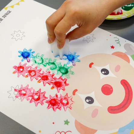 6가지의 예쁜 컬러 도안이어서 활동지 세트 상품 중에서 단연 인기 1위 상품입니다. 도장찍기 놀이하기 좋은 꽃송이폼 15개가 포함되어 있습니다.