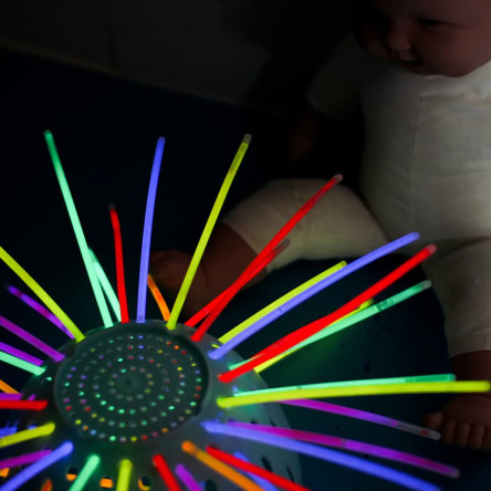 검은 색 옷에 테이프로 야광봉을 고정하고, 불을 끈 후 #야광봉댄스 놀이를 즐겨 보세요 :)