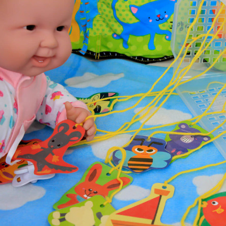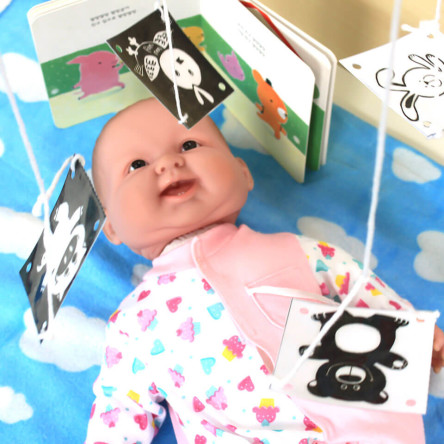 이 헝겊책은 유아의 시각을 자극하여 두뇌 발달과 직접적으로 연관된 인지력을 향상시켜줍니다. 아울러 끈이 달려 있어 유아의 머리맡에 걸어둘 수 있습니다.
