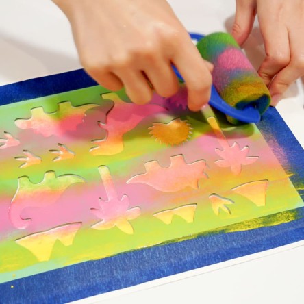 | 구성 | 4종 스텐실 판 4장 / 18 x 23 (cm) / 주황, 연두, 하늘, 보라 / 공룡 시대, 초원의 동물들, 바다 속 동물들, 여러 가지 차 |