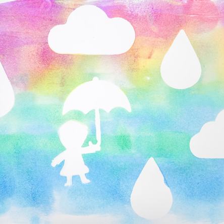 2매 / 29 x 28 (cm) / 흰색 / 구름, 물방울, 우산, 우비 입은 아이들