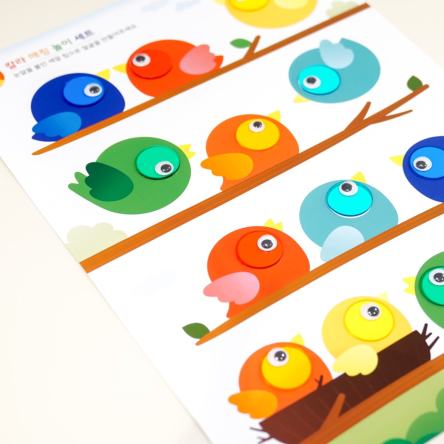6가지 색깔 칩과 알쏭달쏭 재미있는 활동지가 담겨 있는 "칼라 매칭 놀이 세트"는 색깔을 주제로 간단한 문제를 해결하는 과정 속에서 두뇌를 마구 자극하는 놀이 세트입니다.