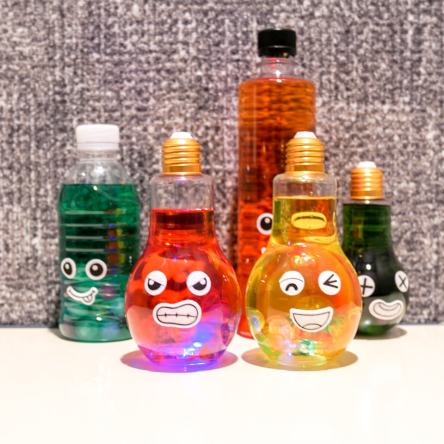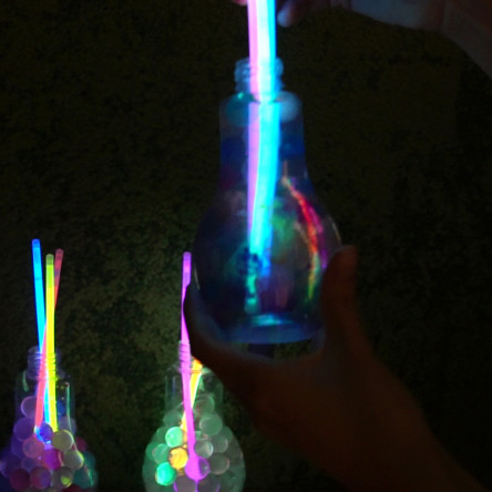 2. 야광봉을 구부려 발광을 시킨 후 뚜껑을 연 전구병에 꽃아 보세요!