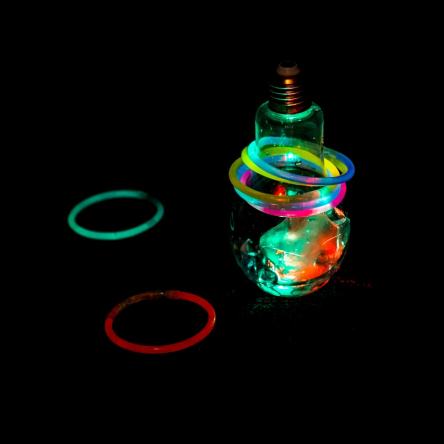 1. 전구병에 불을 켜 두고, 뚜껑을 닫은 다음 야광 팔찌 고리 던지기 놀이를 해 보세요!