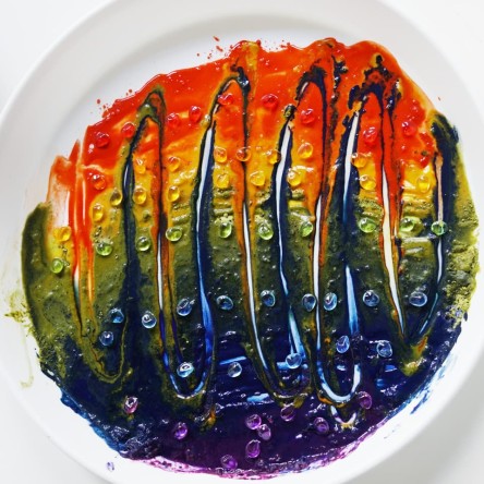 | 2 식용색소는 손으로 아이가 직접 만지지 않도록 해주세요! 손에 물이 들 수 있답니다. 물론 안전하고 시간이 지나면 착색이 없어지지만, 시간이 조금 걸리기에 처음부터 손으로 만지지는 않도록 지도해 주세요! | |
