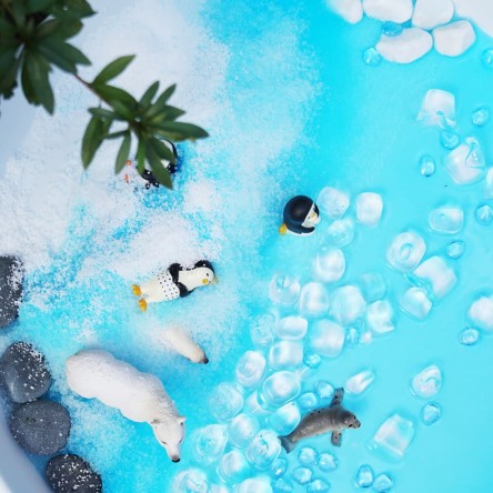 아이에게 탐구력과 정서적 안정감을 선물해요! '자연을 담은 촉감 스타터' 바다에 물고기를 찾으러 온 북극곰(집에 있는 피규어 친구를 초대해 보세요) 과 자연 내음 가득한 촉감 놀이 세상으로 호기심 가득한 우리 아이와 함께 놀러 오세요!