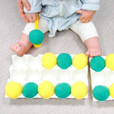 직접 폼폼이를 옮기며 소근육 조절력은 물론 추리력, 사고력도 키워갈 수 있도록 '지능업! 계란판 패턴놀이'를 선물해보세요~