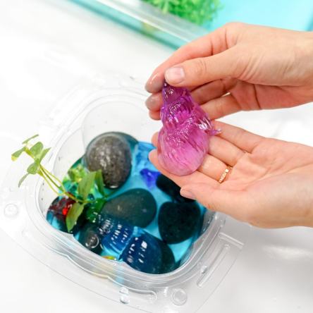'통통한 소라 수정토'는 말캉거리고 미끄러운 수정토 특유의 기분 좋은 촉감이 있어 더욱 재미난 촉감놀이 재료예요! 푸른 바다가 떠오르는 소라 형태는마치 바닷속을 탐험하듯 아이의 상상력을 마구 마구 자극하지요.
