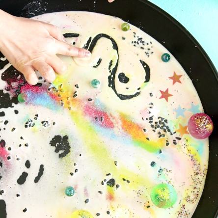 위 재료를 준비하시면, 블랙 오감 놀이 트레이 위에서 그림 그리거나 낙서를 할 때 발색이 아주 선명하고, 질감도 좋아 아이들이 재미나해요