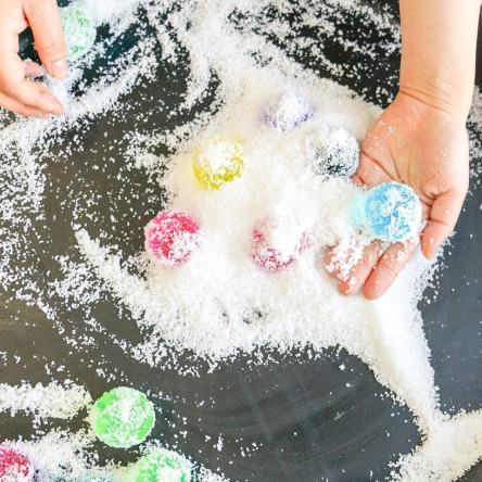 * 눈꽃 파우더 놀이 후 물로 배수구에 흘려보내지 마시고, 반드시 휴지통에 버려 주세요.