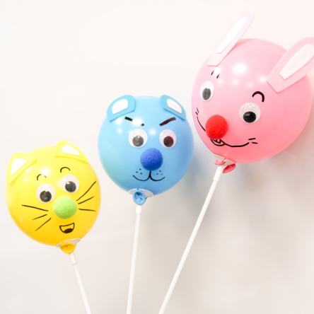풍선을 막대에 꽂아 연결하면 아이가 들고 다니며 놀이할 수 있기에 유용하답니다.