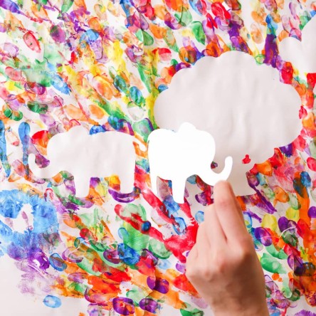 | 재단 재료 | 핑거페인팅 모양 종이 (11종) 말: 1개, 12cm x 10cm, 220g, 하양 / 새: 1개, 9cm x 7cm, 220g, 하양 / 하마 : 1개, 13.5cm x 8.5cm, 220g, 하양 / 양: 1개, 10cm x 9.3cm, 220g/ 숫사자: 1개, 11.5cm x 11.5cm, 220g, 하양 / 치타: 1개, 13cm x 10cm, 220g, 하양 / 1번 코끼리: 1개, 12.8cm x 9.7cm, 220g, 하양 / 2번 코끼리: 1개, 14cm x 8.5cm, 220g, 하양 / 1번 기린: 1개, 7.8cm x 13cm, 220g, 하양 / 2번 기린: 1개, 10cm x 15.5cm, 220g, 하양 / 나무: 1개, 18cm x 17.5cm, 220g, 하양 |