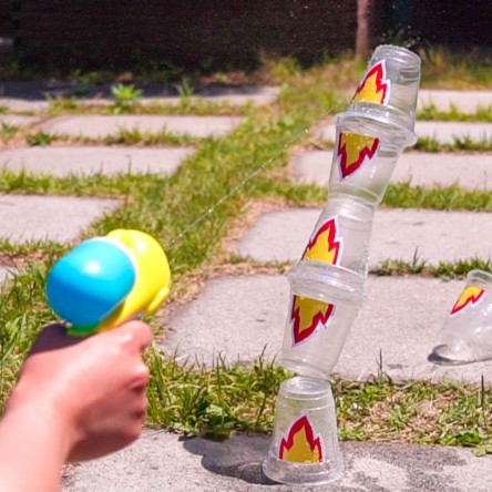 3. 방아쇠를 당기면 뿜어져 나오는 물줄기를 통해 인과관계를 알게 돼요.
