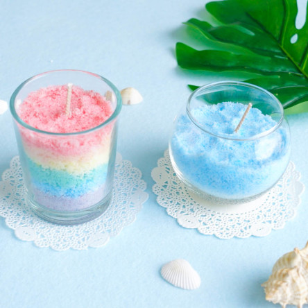 야자로 만든 천연 샌드 왁스 가루에 색소만 넣고 섞으면 양초 완성!