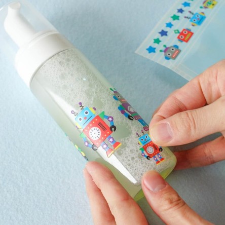 연출 사진 속 핸드 워시는 로봇 테마 로보로보 스티커/ 바다나라 스티커 로 꾸몄어요!