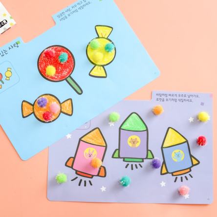 폼폼이는 부드러운 질감과 알록달록한 색감, 어느 곳에서도 활용 가능한 비구조화된 모양이 아이가 상상력을 발휘하는데 충분한 재료입니다.