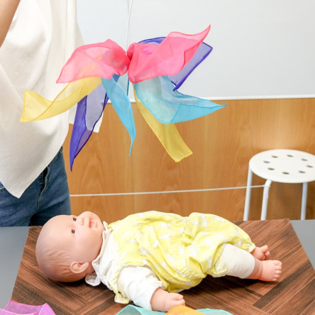 1. 열 가지 다양한 파스텔 색깔의 스카프의 부드러운 오간자 재질이 아이의 시각과 촉감 발달을 도와줘요.