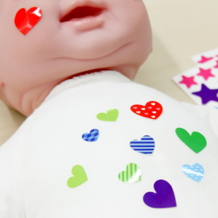 스티커의 알록달록한 색감과 하트, 별 모양은 아이를 만족시키기에 충분하지요.