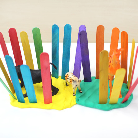 색깔 막대는 수성 물감을 나무에 칠한 것으로, 물기가 있는 상태에서 잡거나 놀이하는 경우 물들 수 있으니 주의해 주세요!