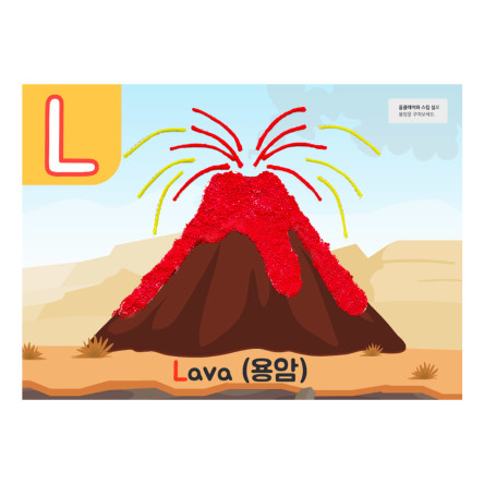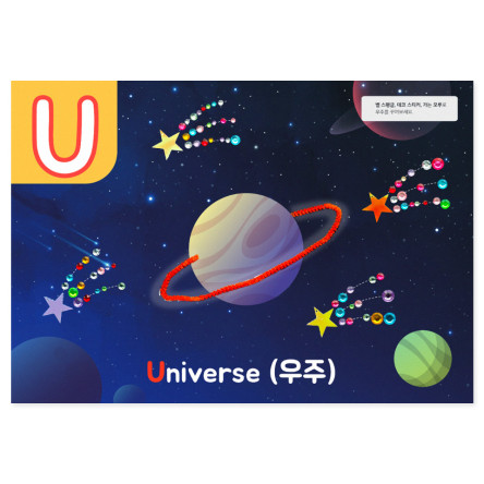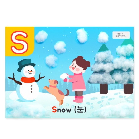 26개의 알파벳과 각 알파벳으로 시작하는 단어 그림을 다양한 꾸미기 재료로 완성하며 알파벳과 해당 단어를 연계하여 익힐 수 있답니다.