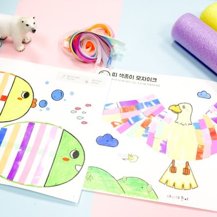 [옵션 4] 모자이크 놀이 활동지 1 set (4장) + 띠 놀이콘 (약 200cm x 6가지 색상 - 빨강, 주황, 노랑, 연두, 하늘, 보라)