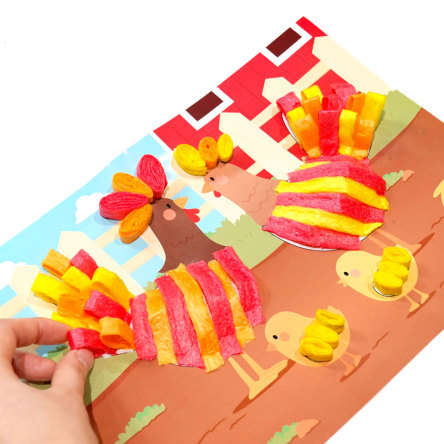 물티슈에 꾸욱 눌러 살짝 녹이면 활동지에 잘 붙어 쉽게 사용할 수 있는 띠 놀이콘으로 멋진 그림을 완성해볼까요?