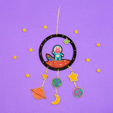 옵션 1 ▶ 구성품: 우주토끼 나무판1개 (모빌링1개, 나무조각7pc), 실(노랑색, 4m)