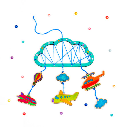 옵션 2 ▶ 구성품: 날아라 비행기 나무판1개 (모빌링1개, 나무조각6pc), 실(파랑색, 4m)