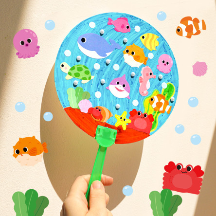 ▸ [옵션 1] 작은 바다 부채 만들기 / 1세트 (작은 무지 원형 그리기 부채 1개 + 바다 생물 꾸미기 스티커 1장 + 진주 비즈 스티커 1줄 + 부채 손잡이)