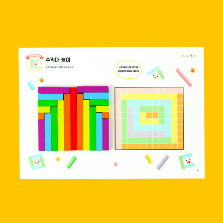 | 제품명 | 수막대 놀이 49개의 '수막대'가 들어 있는 수막대 1세트와 활동지 1세트(7장 / A4사이즈 / 단면. 컬러, 아트지 재질) 구성으로 재미있고 다채로운 놀이를 할 수 있어요! |