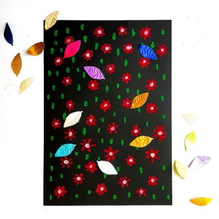 - 오일 파스텔 12색 1세트 + 8절 검정 도화지 5장 + 펠트 칼라 나뭇잎 1봉(20매/ 약 2.7g)