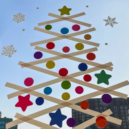 [구성품] 눈꽃 스티커 1봉, 절연 테이프 (초록색 1개), 절연테이프 (하양 1개), 떼었다 붙였다 모양스티커 (원/별) 1개