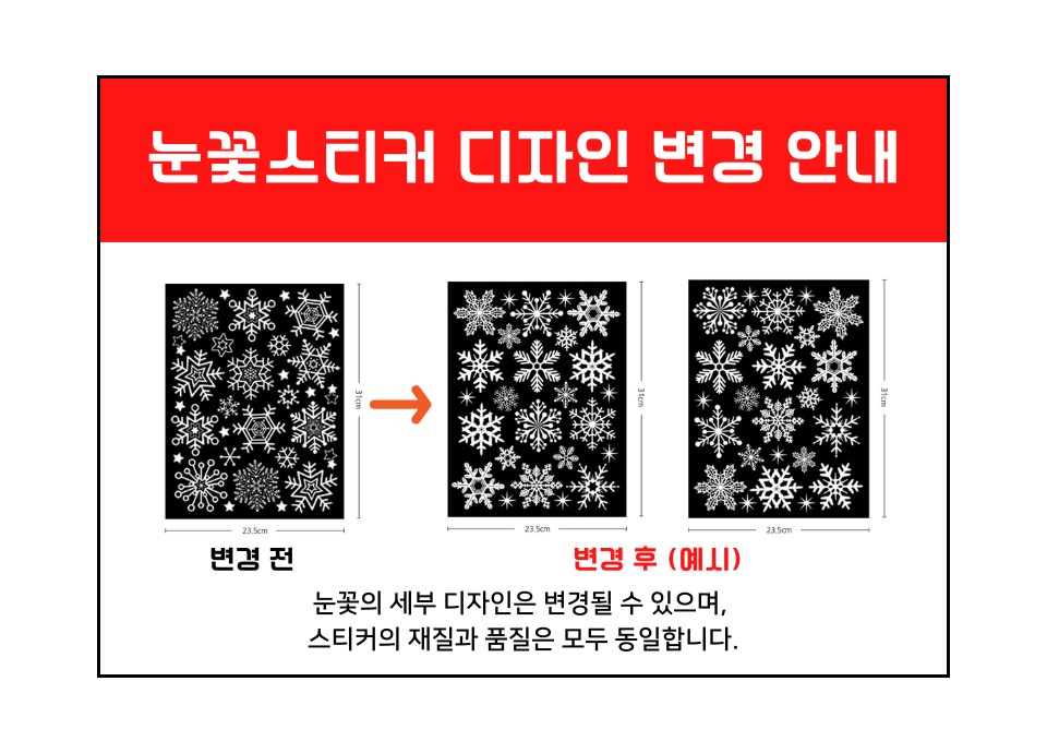 | 제품명 | 겨울 투명 스티커 옵션 1,옵션2, 옵션3, 옵션4에서 선택한 디자인 스티커 1장을 보내 드려요! /옵션별 1장의 스티커로 구성되어 있어요. / 전체 크기 23 x 31cm / 흰색 |