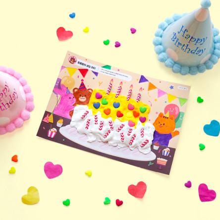 | 구성품 | (1) 동물들의 생일 파티' 클레이 놀이 세트 활동지 1장(A4) / 가로 210 × 세로 297 mm / 컬러, 단면 |