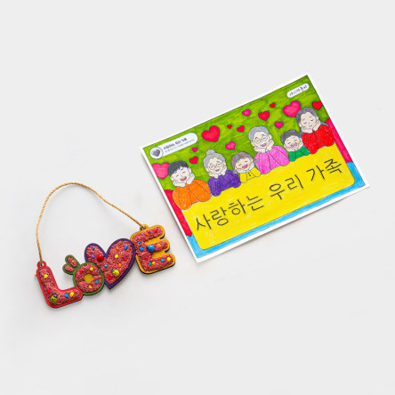 ♡ 옵션 2 (LOVE - 1인용) : 우드 레터링 'LOVE' 1개, 칼라폼 클레이 (랜덤색상 / 50g) 1봉지, 색 자갈 (혼합색 / 4g) 1봉지, 무당벌레 모형 (2.8g) 4개, 마사 (4합~6합 / 40cm) 1줄, '사랑하는 우리 가족' 색칠 활동지 (A4) 1장