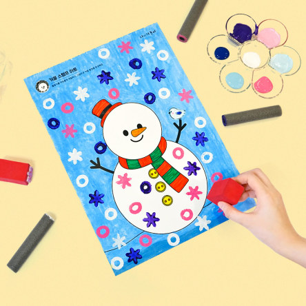 겨울 스탬프 아트 활동지 (눈사람&겨울 풍경)각 2장씩 총 4장 + 도장 2개 완성용 재료 (EVA 막대 2개 + EVA 눈꽃 스티커 4장) + 롱 핑거폼 5개