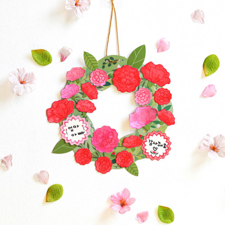 🌹'카네이션 리스 만들기'는 뜯어 쓰는 종이로 색칠하고 붙여 손쉽게 완성할 수 있습니다.