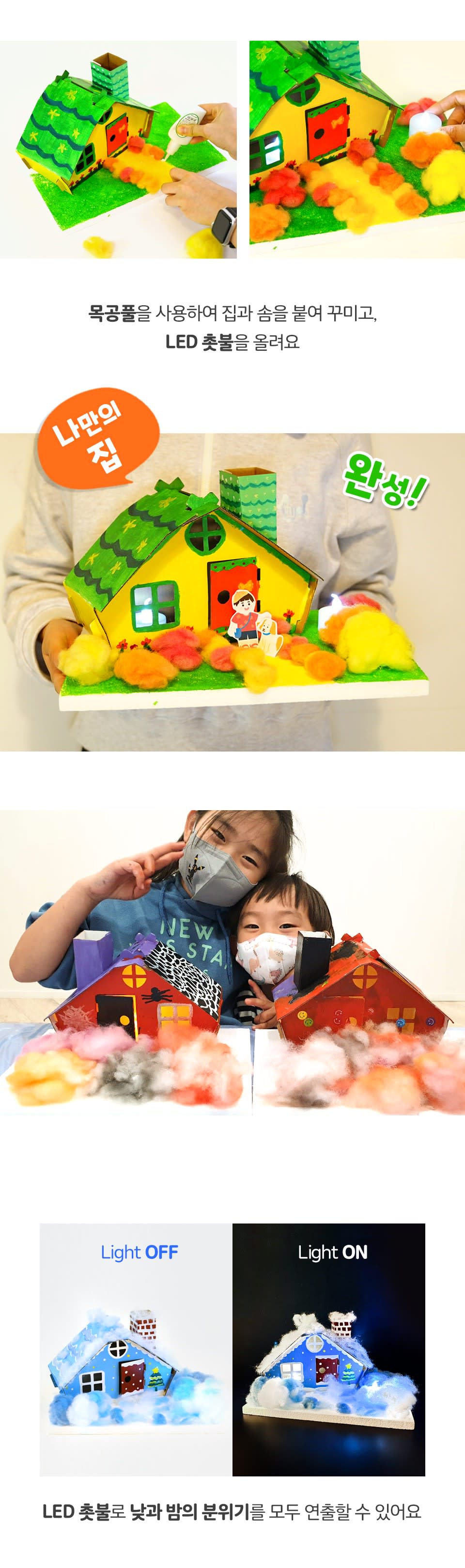 종이집 전개도 1세트+압축 스티로폼 판 1개+LED 티라이트 촛불 2개+목공풀 1개+구름솜(30g) 1봉