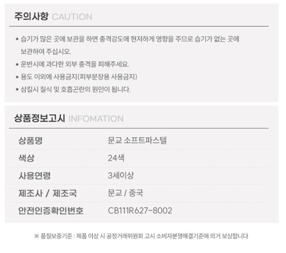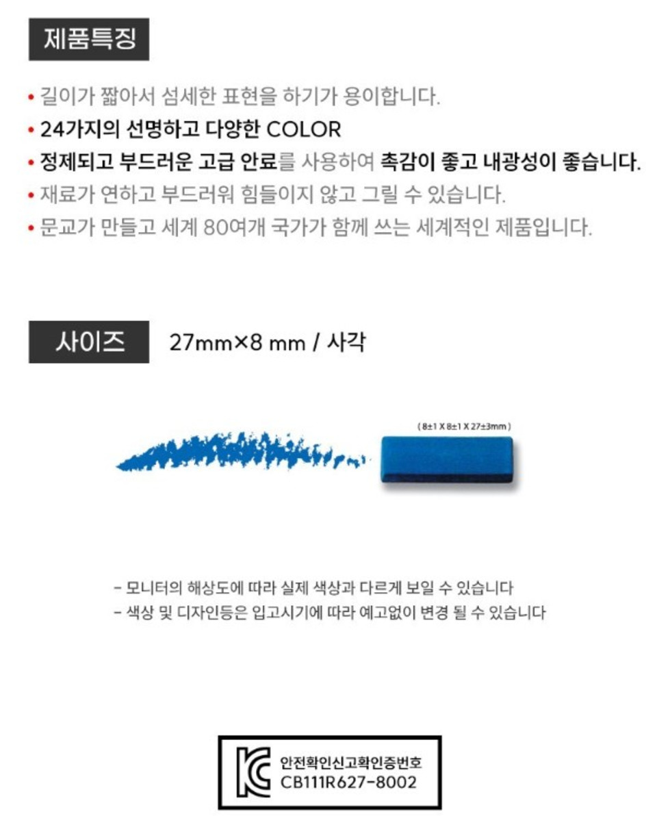 ▶문교 파스텔 24색 1세트 안전기준 적합 확인 : CB111R627-8002