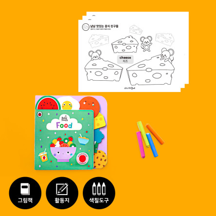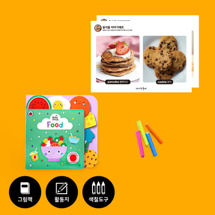 | 옵션 3. | Food 1권 (표지 포함 12쪽) / 가로 26cm x 세로 26cm / 컬러 혼합 / 종이(보드북) |