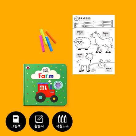 | 옵션 5. | Farm 1권 (표지 포함 12쪽) / 가로 18cm x 세로 18cm / 컬러 혼합 / 종이(보드북) |
