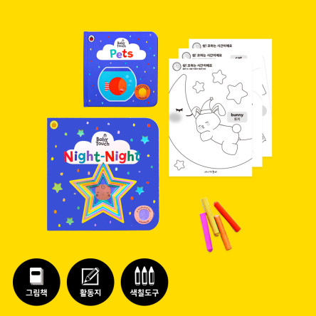 | 옵션 3. | Night-Night 1권 (표지 포함 12쪽) / 가로 26cm x 세로 26cm / 컬러 혼합 / 종이(보드북) |