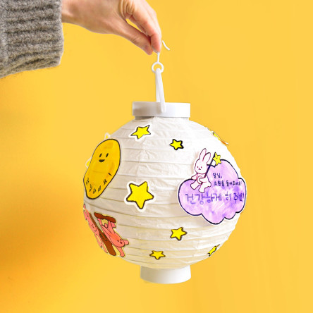 소원 달 색칠 스티커 1장 + 한지 전등 1개 (흰색, AAA 건전지 2개 포함) + 원형 폼 스티커 11개 (지름 2cm)