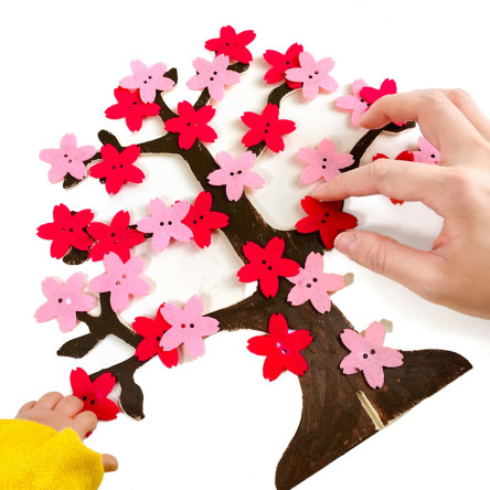 - 꾸미기 나무 1개 + 펠트 벚꽃 1봉 (30개, 진분홍/연분홍 2가지 색상이 들어 있고, 총 수량은 30개로 펠트 재료 색상별 수량은 고정이 아니며 준비 상황에 따라 변동될 수 있습니다.)
