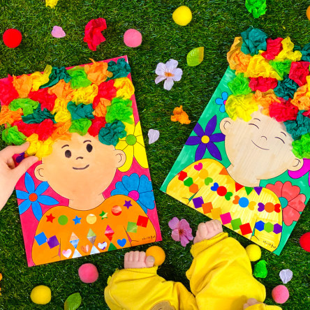 ❤ 구성 2. 얼굴 꾸미기 세트: 얼굴 꾸미기 활동지 3장 + 습자지 20장(5색/색상별 4장씩, 빨강, 주황, 노랑, 연두, 초록) + 도형 스티커 ① 1봉