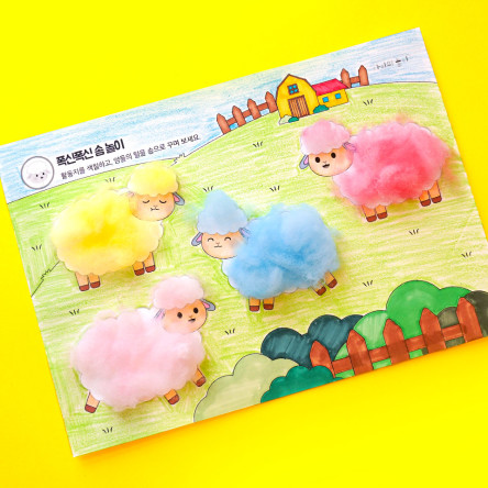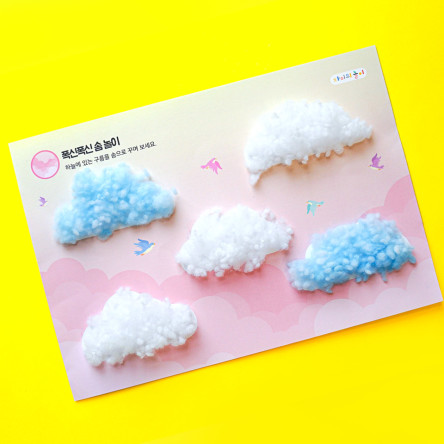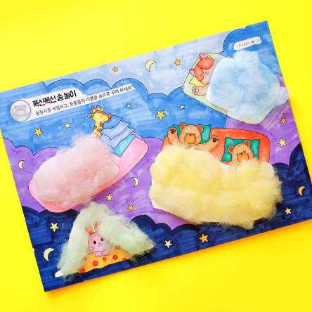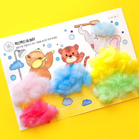 | 구성 5 | 폭신폭신 솜 파스텔 색깔 구름 만들기 놀이 세트 솜 놀이 활동지 1세트 ( (4장 구성, 36.5 X 25.4 cm (*B4 크기) 흑백 3장 + 칼라 1장) + 구름 솜 30g 1봉 + 파스텔 24색 1세트 + 투명풀 1개 / 솜 염색 놀이는 엄마표 놀이로도 많은 사랑을 받고 있어요! |