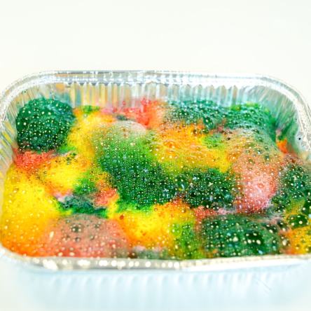 베이킹 소다, 식초, 발포물감이나 식용색소를 활용해서 이렇게 놀이해 보세요 :)
