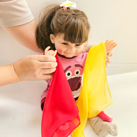 ▶안전하고 고급 소재인 쉬폰을 이용하여 국내 수작업 생산되는 제품이에요. 아이와 두고두고 오감 놀이를 다양하게 할 수 있답니다.