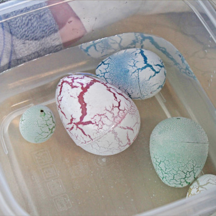 물에 공룡알을 넣어 공룡알에서 공룡이 깨어나는 모습을 관찰해 보세요.